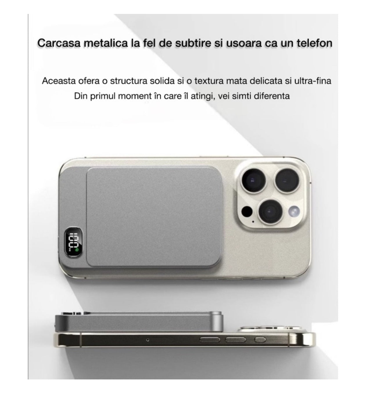 In ceea ce priveste functionalitatea, acest powerbank suporta incarcare MagSafe de pana la 15W, oferindu-ti o incarcare rapida si sigura pentru dispozitivele tale compatibile.