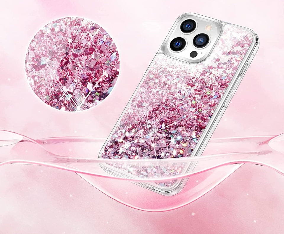 Husa iPhone 13 Pro , cu Lichid si Sclipici,Roz