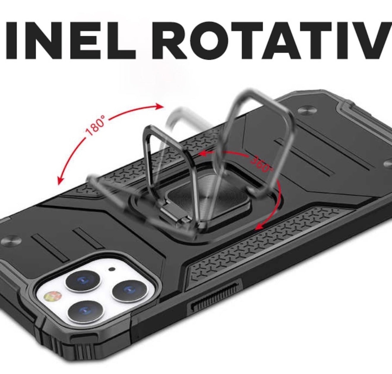 inel metalic cu rotatie de 360 grade, inelul metalic atasat pe mijlocul husei, va ajuta sa folositi telefonul cu functie stand si functie magnetica pe suporturile auto.
