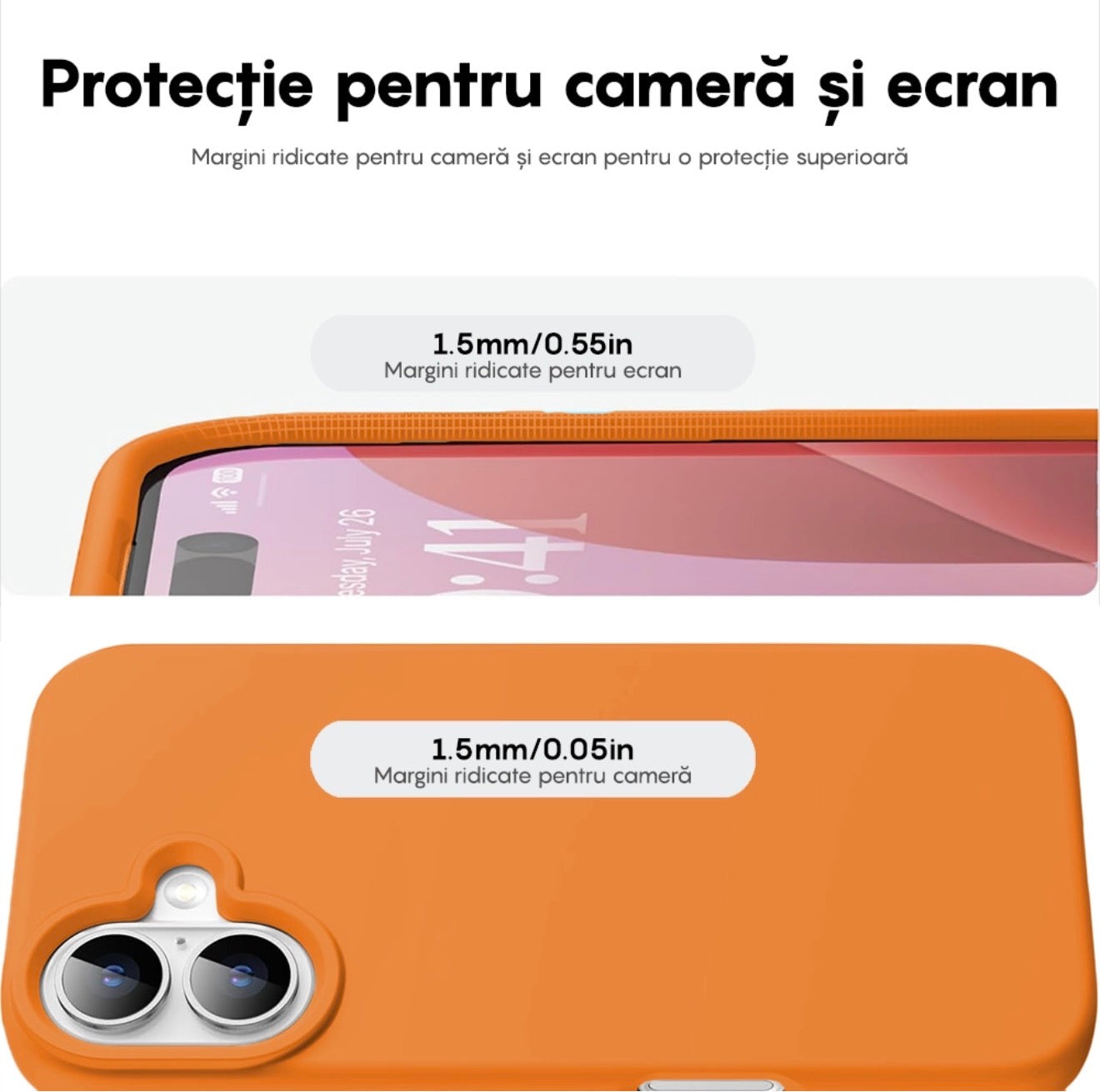 Husa iPhone 16 Plus,Silicon, Microfibra in Interior,Portocaliu + diverse culori