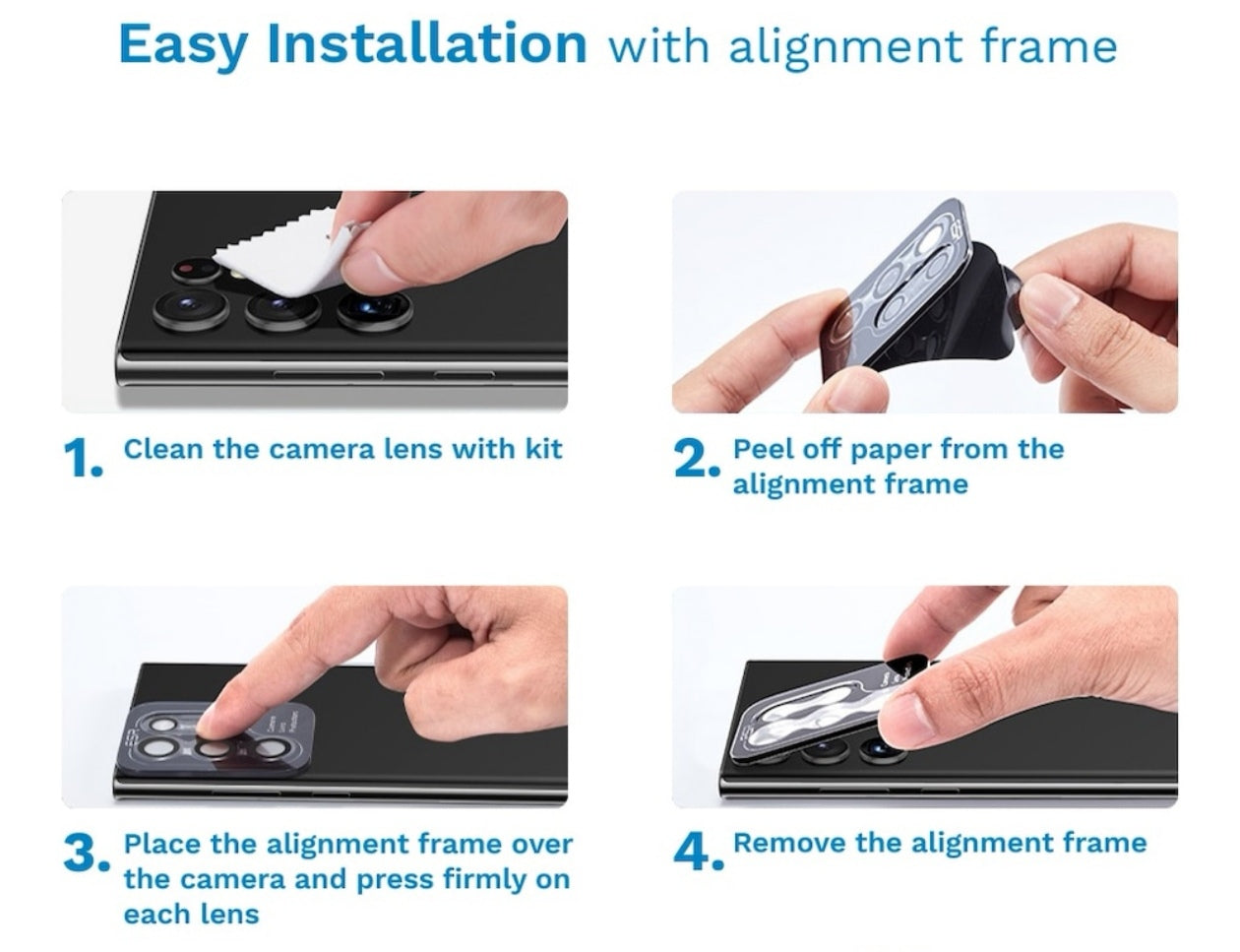 Contine placa de montaj cu protectii individuale pentru fiecare lentila, astfel incat dimensiunile telefonului tau sa nu fie afectate