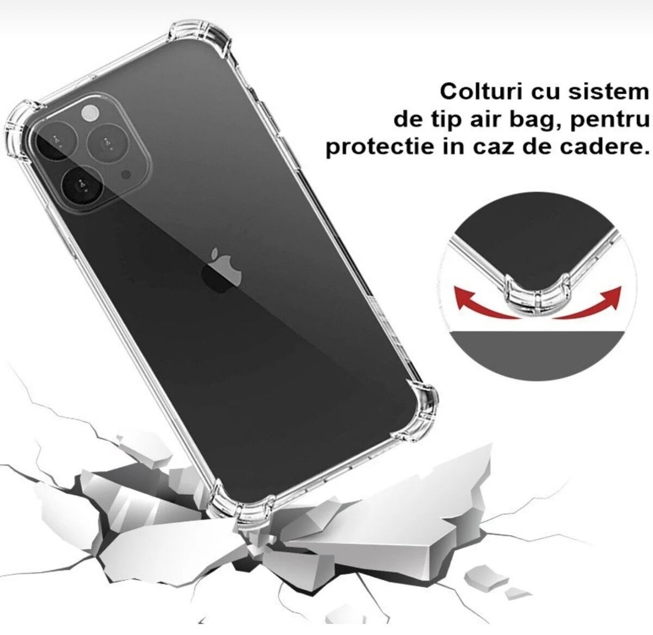 - Transparenta perfecta: Designul transparent permite sa te bucuri de frumusetea si culoarea originala a iPhone-ului tau, protejandu-l in acelasi timp impotriva zgarieturilor si murdariei.
