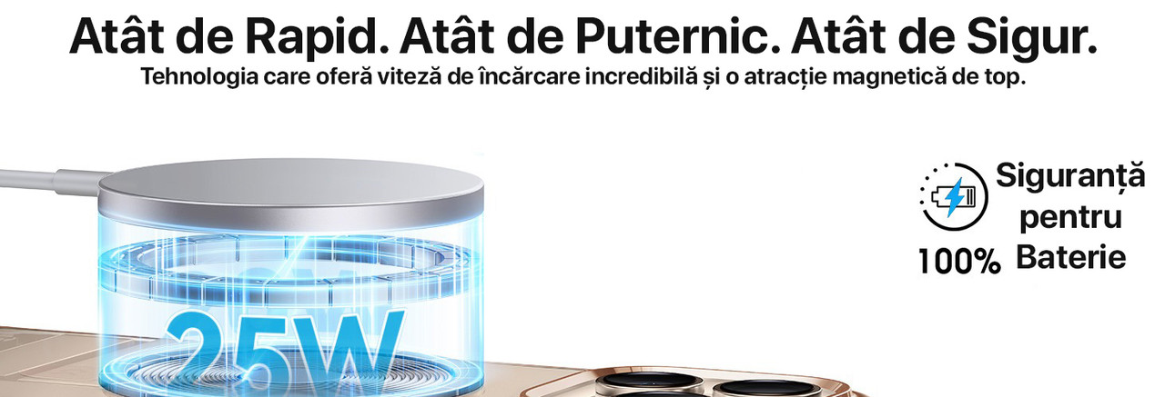 - Compatibila MagSafe si incarcare wireless inel magnetic integrat pentru incarcare rapida si stabila cu MagSafe si toate incarcatoarele QI.