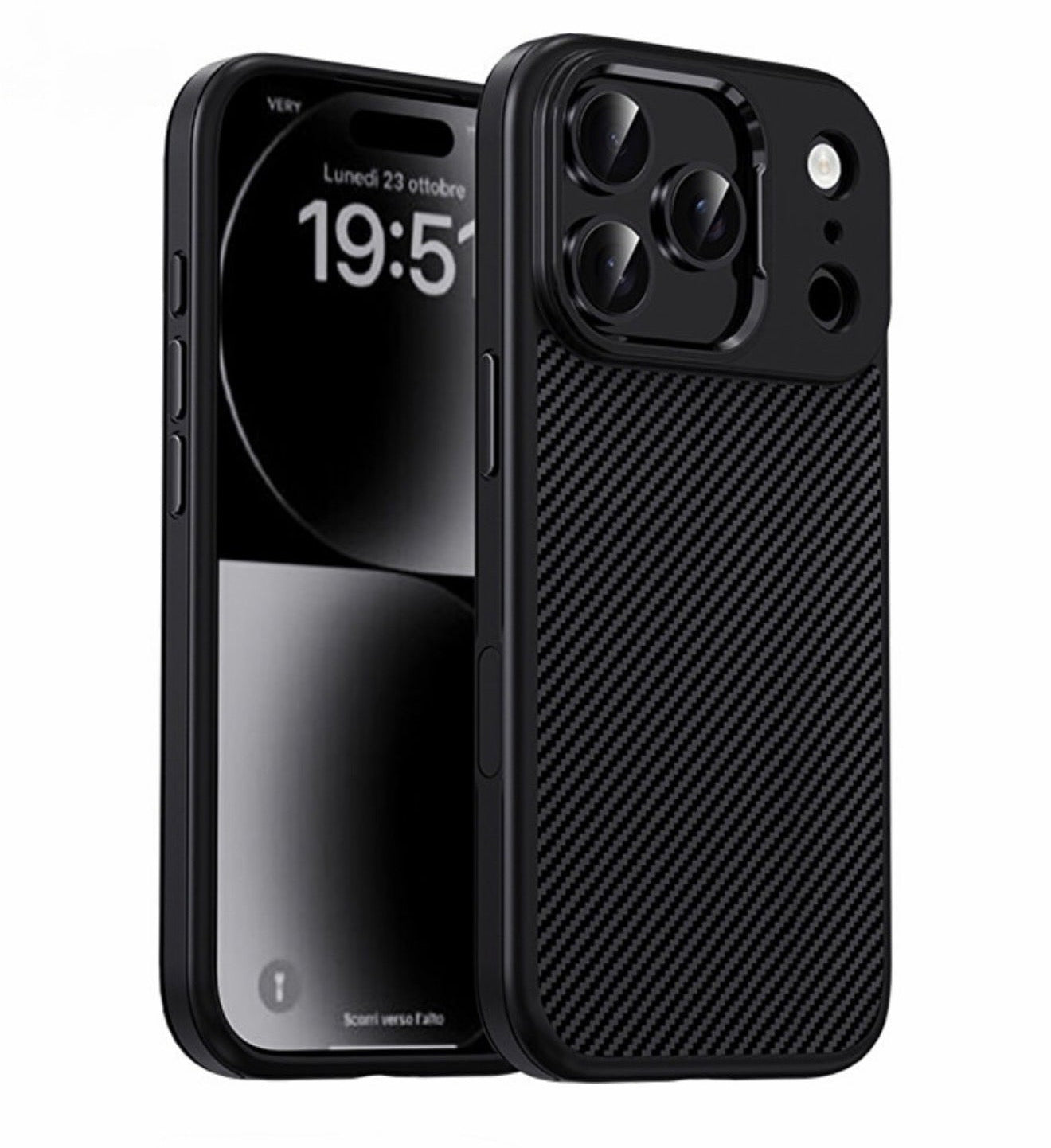 Husa iPhone 17 Pro - Silicon , Textura Carbon - AutoFocus ,Antisoc