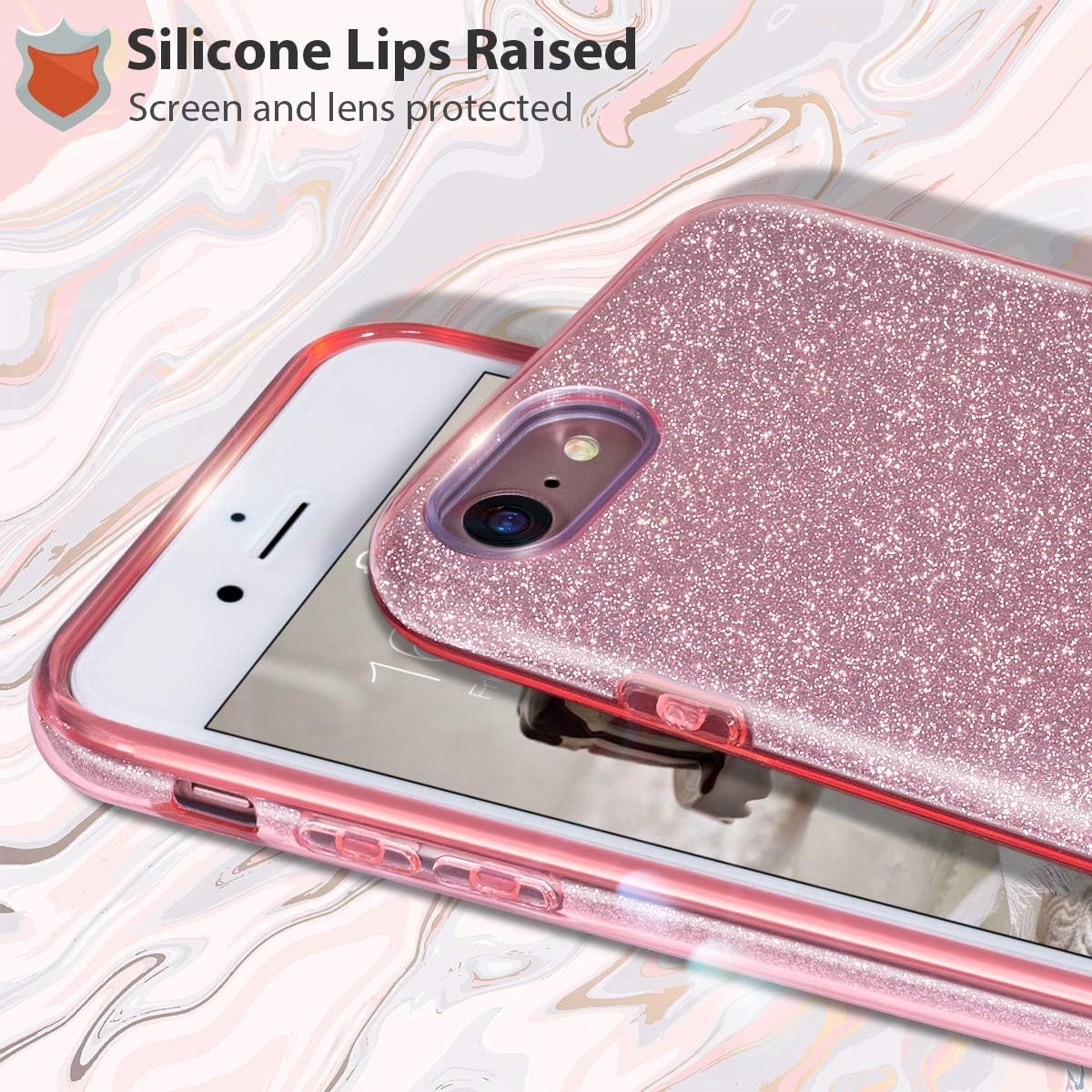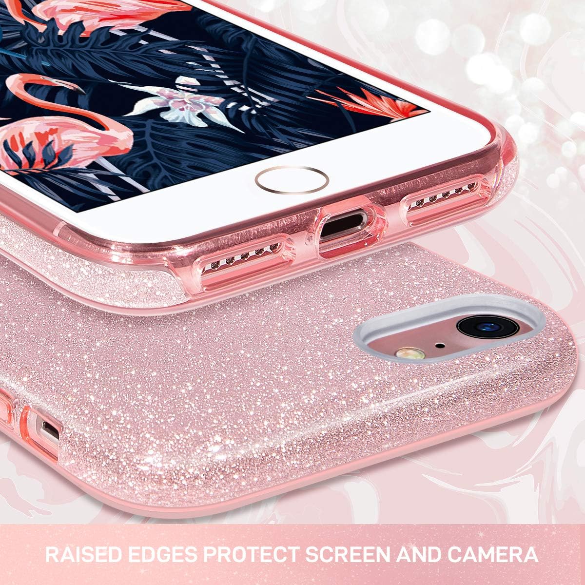 Husa iPhone 7/8/SE ,silicon,cu sclipici Roz +alte culori